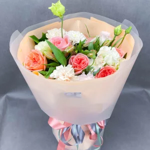 Самой чудесной - стильный букет-новинка из роз, альстромерий и эустомы