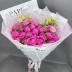 роза кустовая розовая - 7 шт,  эустома - 4 шт, упаковка, лента. Примерный размер: 25Х45 см.